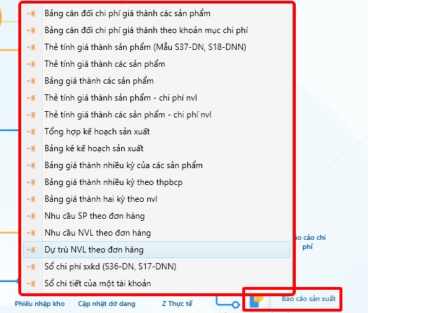 Chương trình cung cấp đầy đủ các mẫu báo cáo về sản xuất