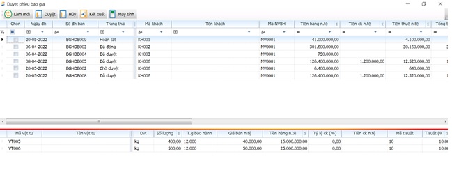 - Bước 1: Bạn truy cập vào danh sách cần duyệt phiếu báo giá.