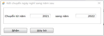 Chức năng này dùng để tính số ngày phép còn lại của nhân viên trong năm vào thời điểm cuối năm, rồi kết chuyển sang năm tiếp theo.