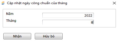 Đường dẫn: Tiền lương\Cập nhật chấm công, cơm\Khai báo ngày công chuẩn