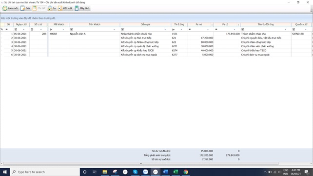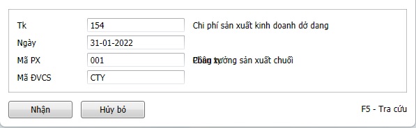 - Bước 4: Kết chuyển chi phí 621,622, 627 sang chi phí sản xuất kinh doanh dở dang – 154