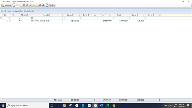 - Đường dẫn: Chi phí, giá thành\Giá thành giản đơn\Số dư đầu\Vào số dư ban đầu của các phân xưởng