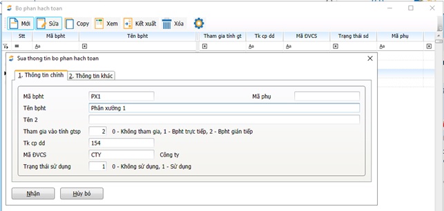 Mã bpht | Mã bộ phận hạch toán |