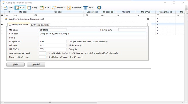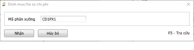 Mã phân xưởng | Chọn phân xưởng/công đoạn tính giá thành |