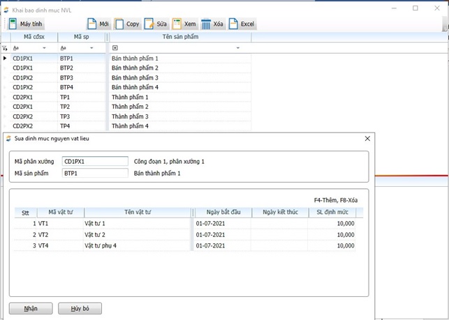 - Khai báo danh mục thành phẩm và nguyên vật liệu