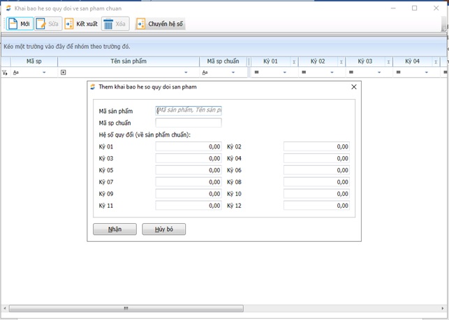 Đường dẫn: Chi phí, Giá thành/Giá thành công đoạn, định mức/Tính chi phí giá thành/ Phân bổ chi phí theo hệ số