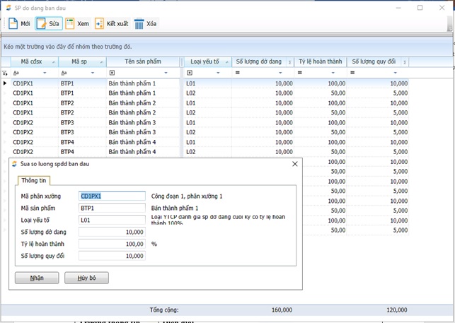 Giá trị sản phẩm dở dang đầu kỳ | 100 | Hộp | 15.000.000 |