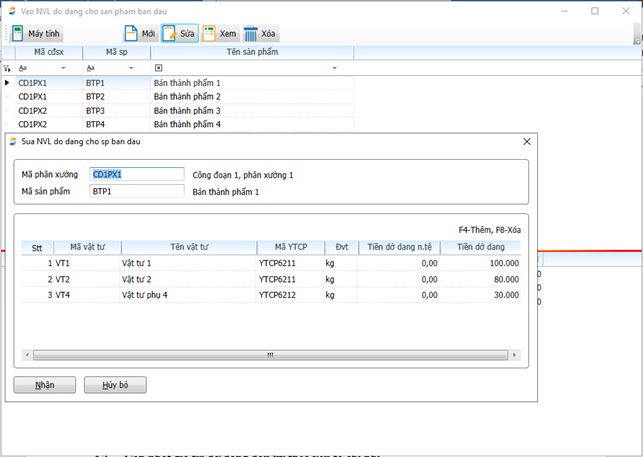 + Khai báo số dư dở dang đầu kỳ của phân xưởng (chỉ khai báo cho lần đầu sử dụng chương trình, những lần tiếp theo thì chương trình tự lấy số dư từ cuối kỳ trước sang.