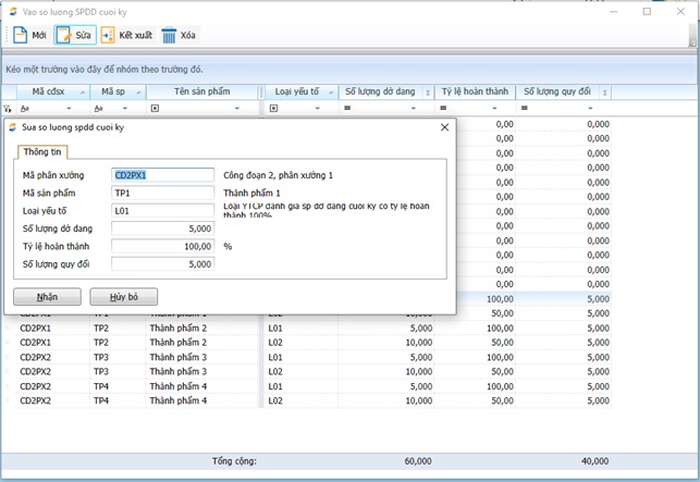- Bước 5: Cập nhật dở dang cuối kỳ