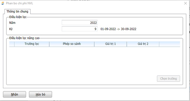 Kỳ | Chọn kỳ tính giá thành |