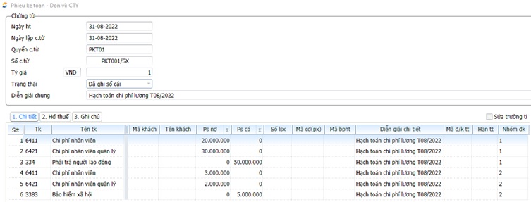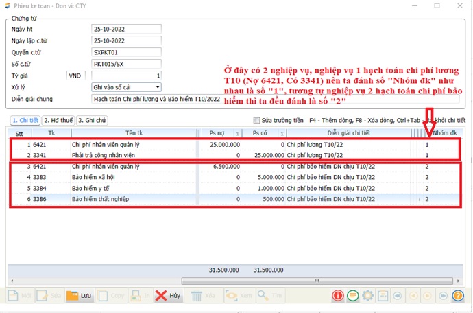 Diễn giải chi tiết: | Diễn giải chi tiết về từng nghiệp vụ phát sinh (Phiếu kế toán cho phép nhập nhiều nghiệp vụ trên phiếu) |