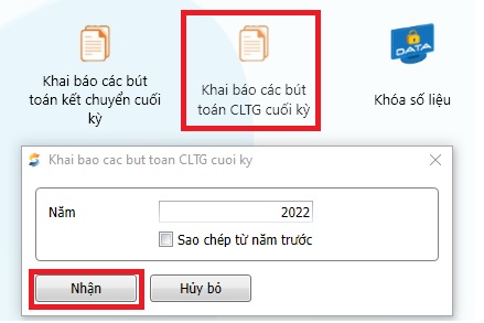 + Chọn năm đánh giá chênh lệch tỷ giá, sau đó nhấn “Nhận”