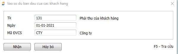 - Chức năng: Chức năng này cho phép nhập số dư công nợ đầu kỳ cho từng khách hàng, nhà cung cấp.