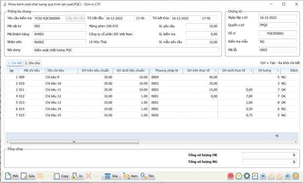 Kiểm tra mẫu | Kết quả tổng quát của phiếu. NG hay OK |