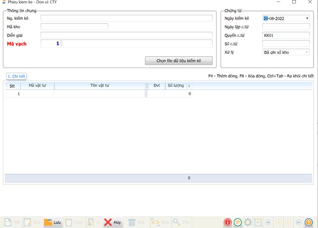 - Chức năng: Tạo phiếu kiểm kê phục vụ cho công tác kiểm kê.