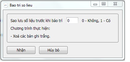 Đường dẫn: Hệ thống\ Quản lý số liệu\ Bảo trì số liệu