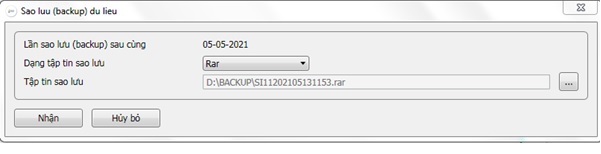 Đường dẫn: Hệ thống\ Quản lý số liệu\ Sao lưu (back up) dữ liệu