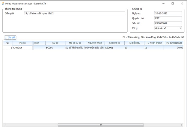 Sự cố | Mã sự cố. NSD chọn trong danh mục sự cố. (Quản trị sản xuất/ danh mục từ điển/ danh mục sự cố) |