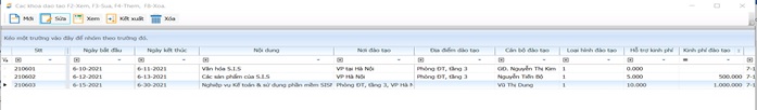 Sau khi nhập các khóa đào tạo sẽ hiển thị như sau:
